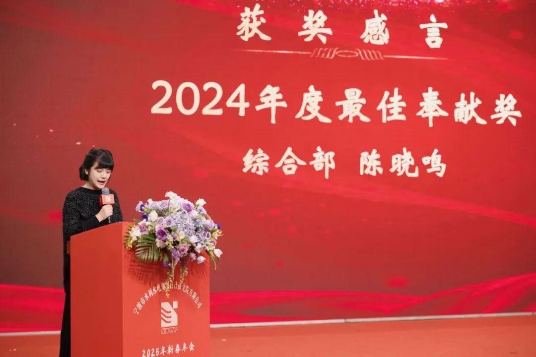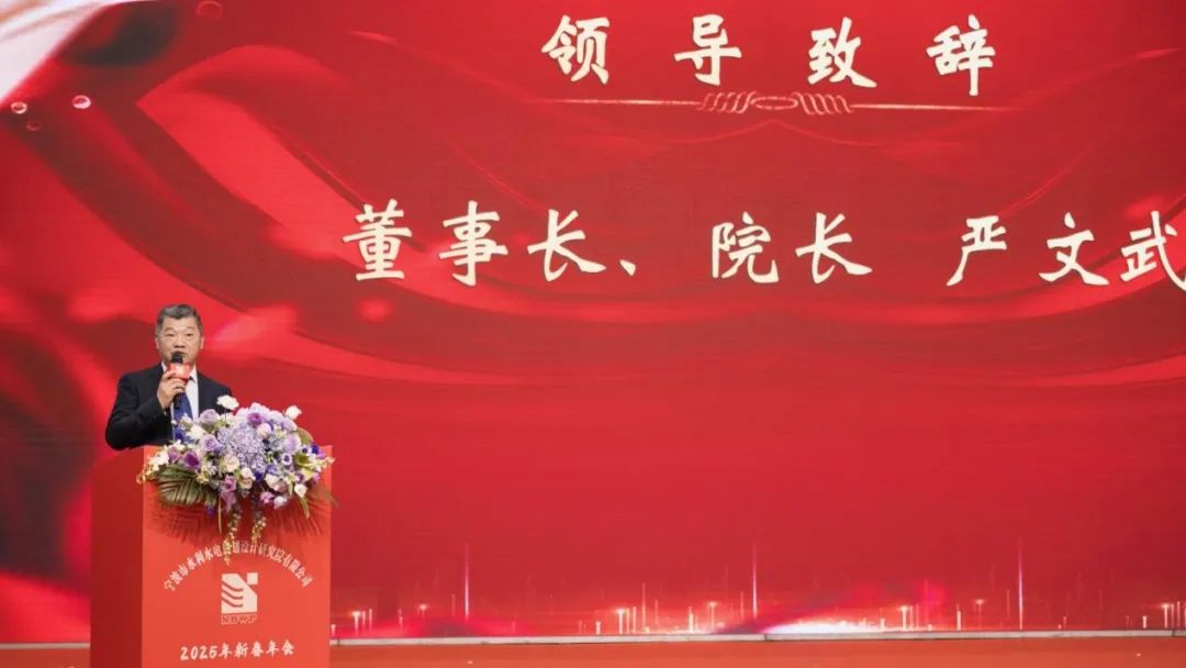我院董事長、院長嚴(yán)文武的致辭為晚會拉開序幕。嚴(yán)院長表示,2024年,全院團(tuán)結(jié)一致,協(xié)同發(fā)力,攻堅克難,用一張優(yōu)秀的成績單為我院新征程吹響了號角;2025年,我院新大樓的落成,這是我院發(fā)展的新的里程碑,也是邁向新征程的起點,希望所有員工共享新家園,愛護(hù)新家園,繼續(xù)傳承和發(fā)揚(yáng)寧波院人堅持不懈的優(yōu)良傳統(tǒng),再創(chuàng)佳績!最后,嚴(yán)院長對所有員工的辛勤付出表示感謝,致以祝福,祝愿寧波院在2025年乘風(fēng)破浪,再創(chuàng)輝煌!