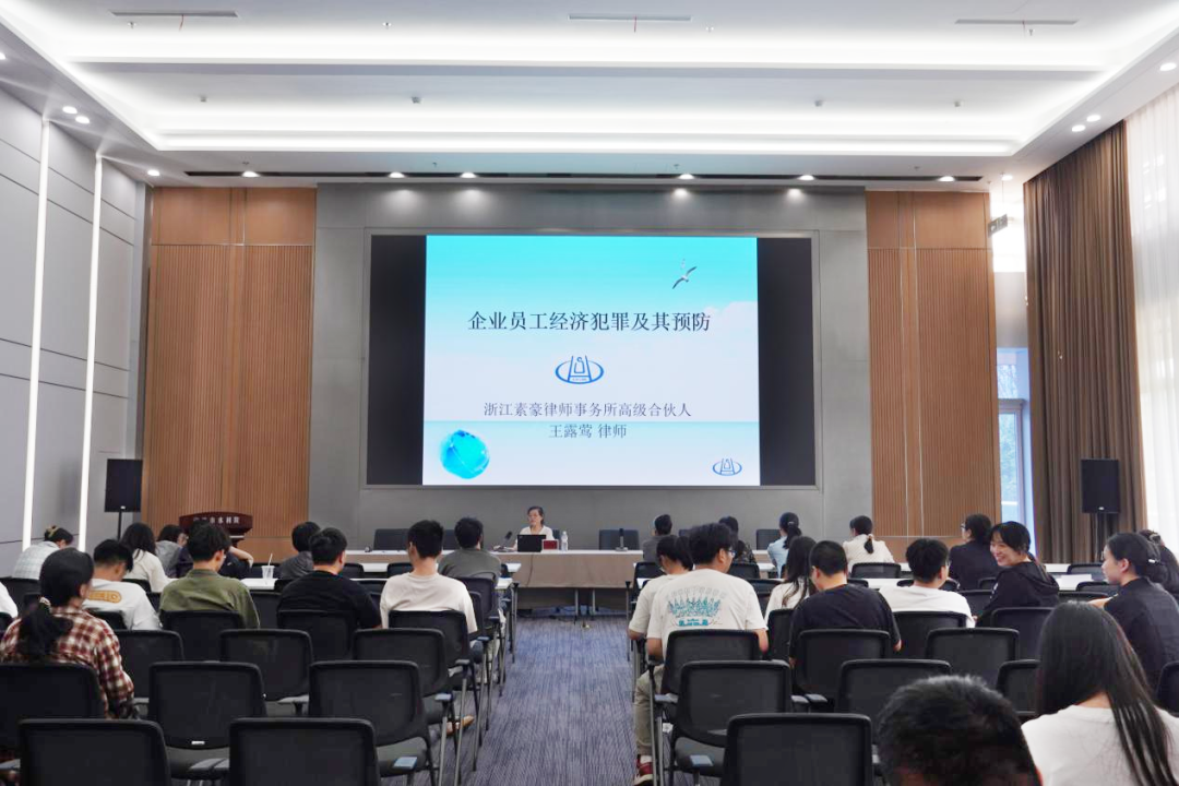 浙江素豪律師事務(wù)所高級(jí)合伙人、寧波市勞動(dòng)人事和社會(huì)保障專業(yè)委員會(huì)高級(jí)顧問(wèn)王露鶯律師則為現(xiàn)場(chǎng)員工帶來(lái)了一場(chǎng)《企業(yè)員工經(jīng)濟(jì)犯罪及預(yù)防》專題宣講。