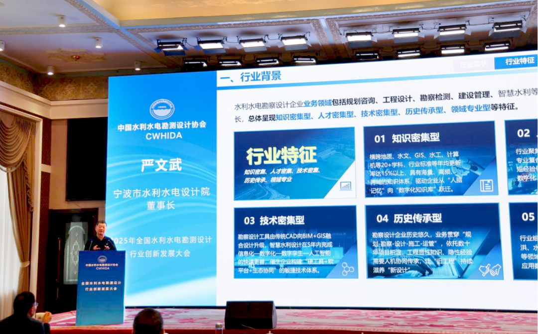 我院董事長(zhǎng)、院長(zhǎng)嚴(yán)文武在大會(huì)上作了《大模型賦能水利水電勘察設(shè)計(jì)企業(yè)數(shù)字化轉(zhuǎn)型》專(zhuān)題報(bào)告,系統(tǒng)分享了我院在人工智能大模型技術(shù)驅(qū)動(dòng)下,推進(jìn)企業(yè)數(shù)字化轉(zhuǎn)型的實(shí)踐路徑與成果經(jīng)驗(yàn)。