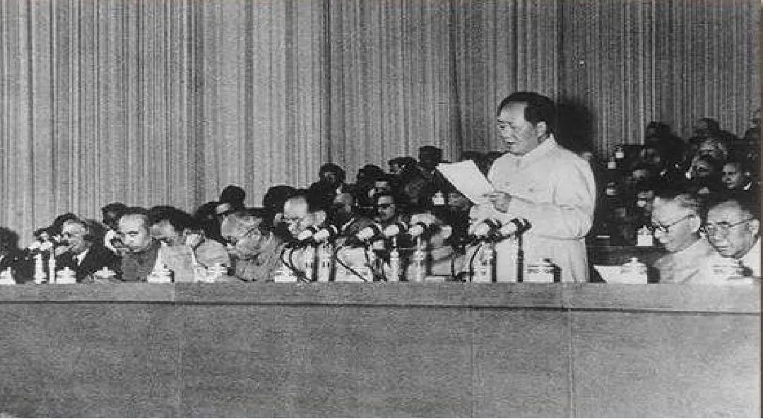 ▲毛澤東在中共八大上發(fā)表講話