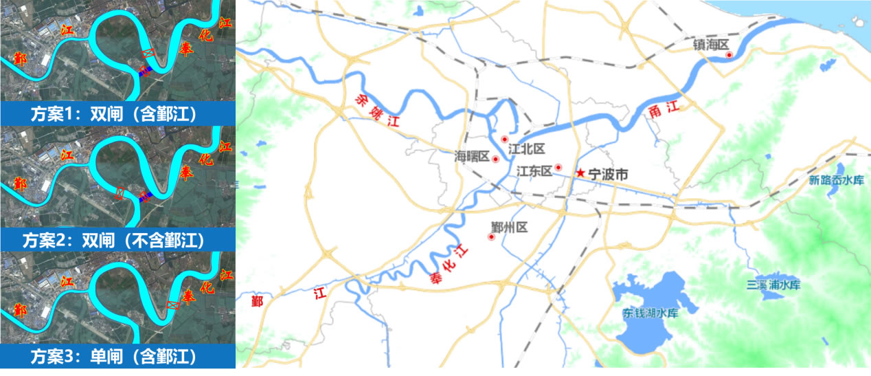 殺雞灣建閘課題的提出:從防洪角度,按照“大小洪水分道走” 的思路,在殺雞灣河段設置干流節(jié)制閘,以調(diào)控奉化江洪水。