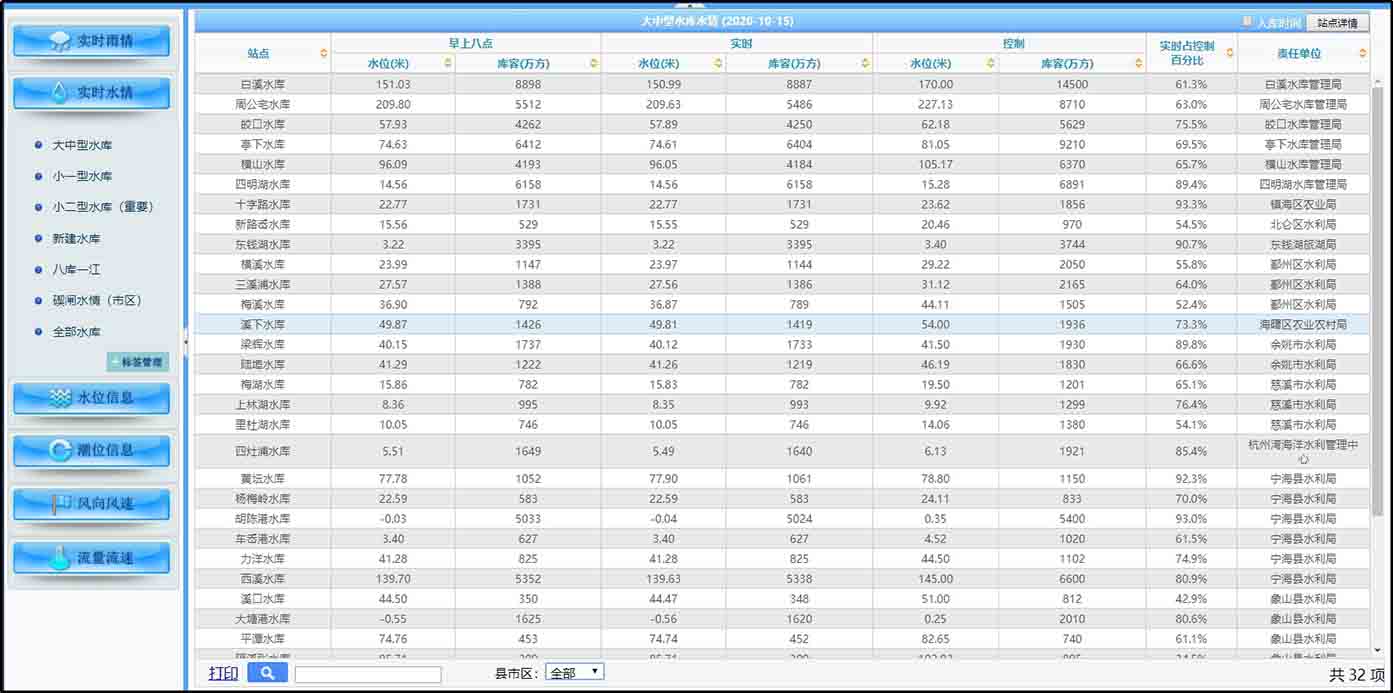 系統(tǒng)采用HTML5web技術,提供各類水情、雨情、潮位、流量監(jiān)測、風向風速等信息的發(fā)布、查詢、統(tǒng)計管理。