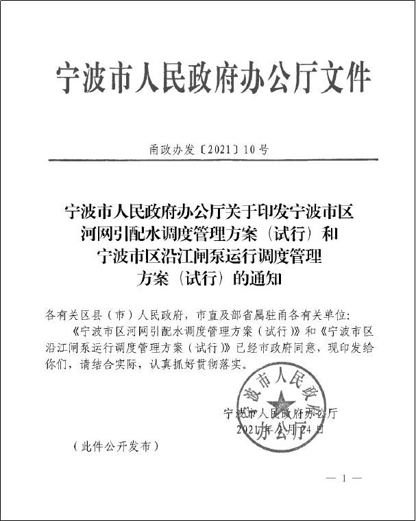 鑒于姚江二通道(慈江)工程的復(fù)雜性和特殊性,以及上下游調(diào)度的敏感性,為科學(xué)指導(dǎo)工程建成后的調(diào)度運(yùn)行管理,研究提出的《姚江二通道(慈江)工程閘泵試運(yùn)行調(diào)度規(guī)則》,于2021年2月24日經(jīng)寧波市人民政府辦公廳公開(kāi)發(fā)布,成果應(yīng)用于2021年7月“煙花”臺(tái)風(fēng)防御當(dāng)中。
