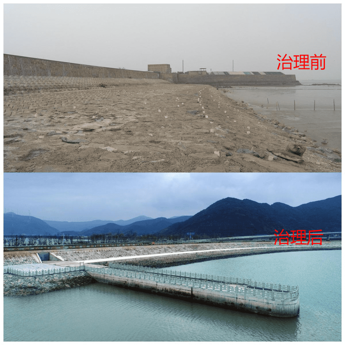 本工程是集防潮防洪、漁業(yè)避風、疏港交通、環(huán)境治理、濱海旅游等功能于一體的綜合型水利工程,位于梅山水道北端,包括海堤810m、中型水閘一座。
