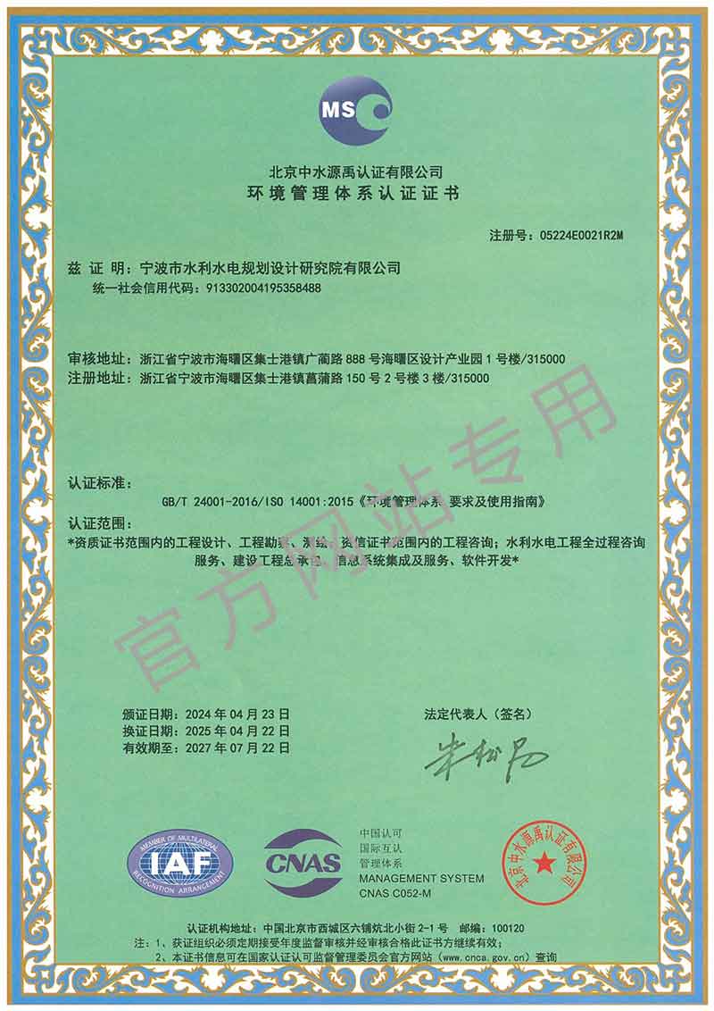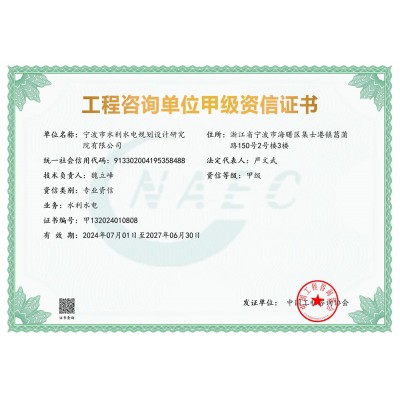 寧波院具有水利水電工程設(shè)計(jì)、工程勘察、工程咨詢、水土保持、水資源論證等多項(xiàng)資質(zhì)。承擔(dān)中小河流域規(guī)劃、水庫、河道整治、灘涂圍墾等工程的勘察、設(shè)計(jì)、咨詢、總承包業(yè)務(wù),以及各領(lǐng)域建設(shè)項(xiàng)目的防洪評(píng)價(jià)、水資源論證、水土保持方案編制、水土保持監(jiān)測(cè)、計(jì)算機(jī)行業(yè)CMMI 3級(jí)認(rèn)證、知識(shí)產(chǎn)權(quán)管理體系認(rèn)證等。